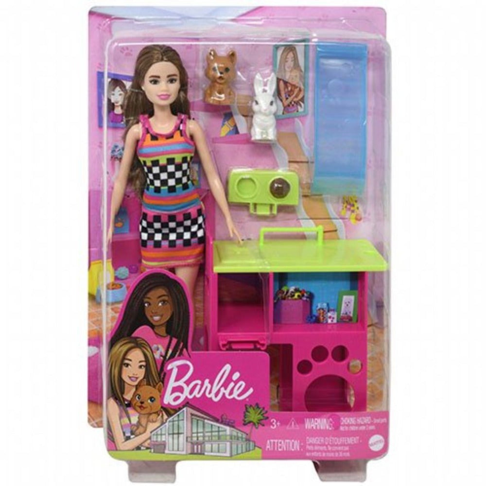 Inspire the ultimate pet Playset with this Barbie featuring Barbie doll, her puppy and bunny pets and their very own playhouse! The playhouse features a bright, colorful design, multiple levels and space for two pets to eat, sleep and play. Fun features, like peekaboo hideouts and a translucent blue slide, inspire super-sweet storytelling! Barbie doll is ready for all-day play in a colorful dress and cool, casual sneakers. With two pets and so many storytelling opportunities,…
