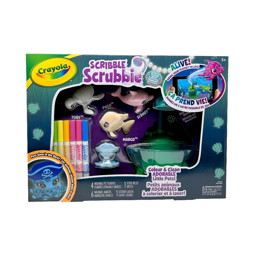 Dive into an illuminated sea of play with the Crayola Scribble Scrubbie Pets Glow Lagoon Playset! It’s time to give your Scribble Scrubbie Pets a glow-up in our whimsical underwater world. This vibrant set, featuring glow-in-the-dark animal pals Marco, Polo, Sydney, and Toby, sparks creativity and imagination. The Glow Lagoon set includes 4 Glow Pets, 6 Crayola washable markers, 1 working scrub tub, and 1 brush. This captivating crew of sea creatures sports a flocked white…