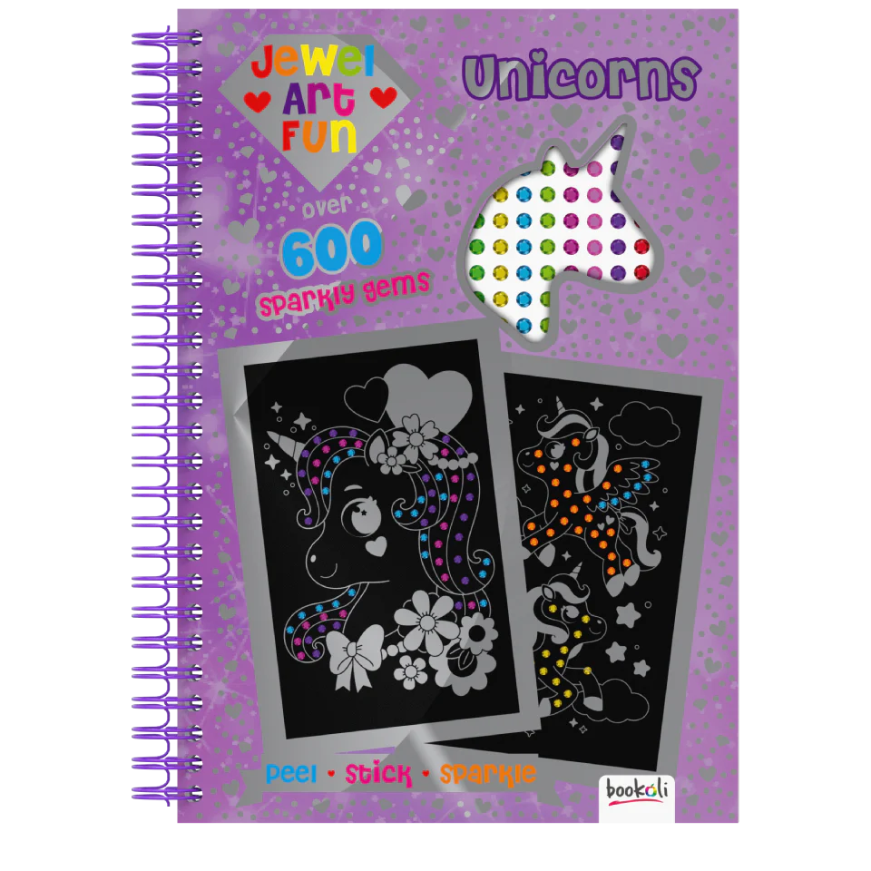 (1) Unicorns :- Dive into a magical world with the Unicorn Jewel Art Fun book! Perfect for creative minds, this kit includes over 600 sparkly gems to decorate enchanting unicorn scenes. From mystical unicorns to rainbow lands, create super shiny pictures with over 600 stick-on gems. Then, grab some crayons and doodle your way through 19 pages of dazzling unicorn friends.